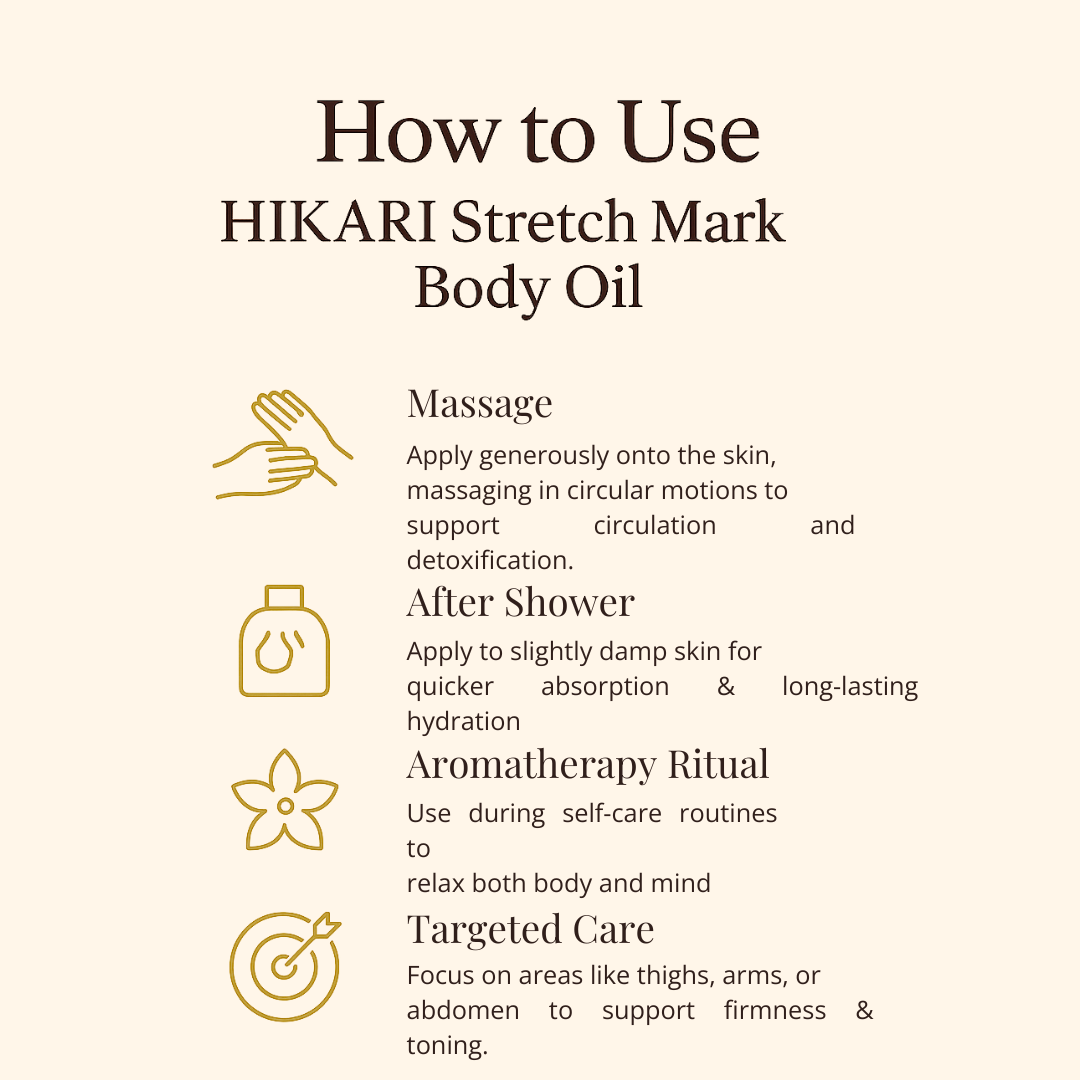 Product Name: HIKARI Stretch Mark Body Oil – Botanical Blend